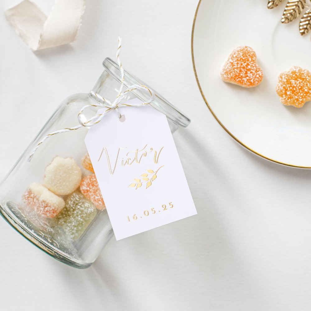 Deze cadeaulabels zijn ideaal voor de communiebedankjes. Dankzij de perforatie kan je er moeiteloos een lintje doorrijgen en bevestigen aan een snoepdoosje of ander klein cadeautje. (lintje optioneel naar keuze)