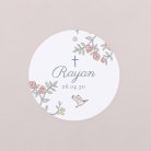 Deze ronde cadeaulabels zijn ideaal voor communiebedankjes. Dankzij de perforatie kan je er moeiteloos een lintje doorrijgen en bevestigen aan een snoepdoosje of ander klein cadeautje. (lintje optioneel naar keuze)