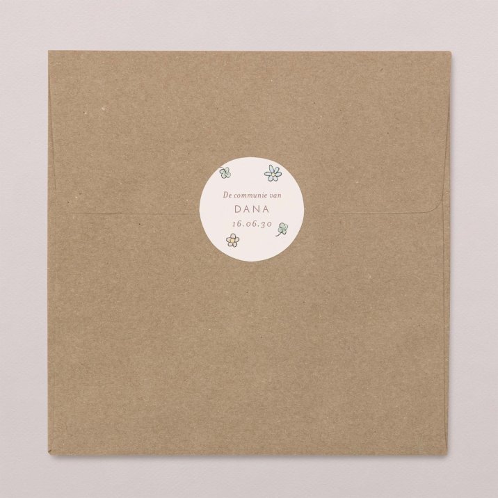 Deze sticker is ideaal voor het afwerken de envelop of een kleine attentie: een snoepdoosje, een kaarsje of ander klein cadeautje voor het bedanken van de gasten voor hun aanwezigheid tijdens de communie of het lentefeest.