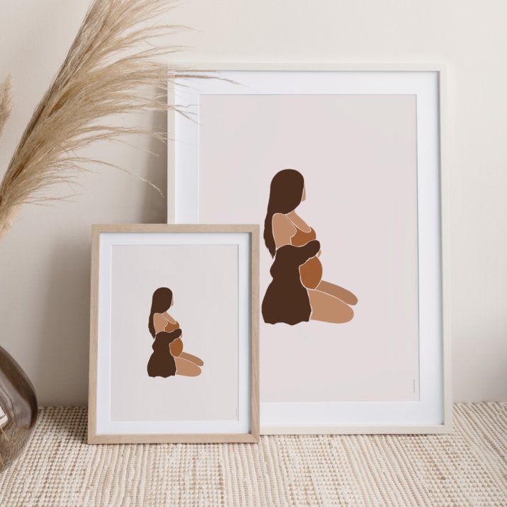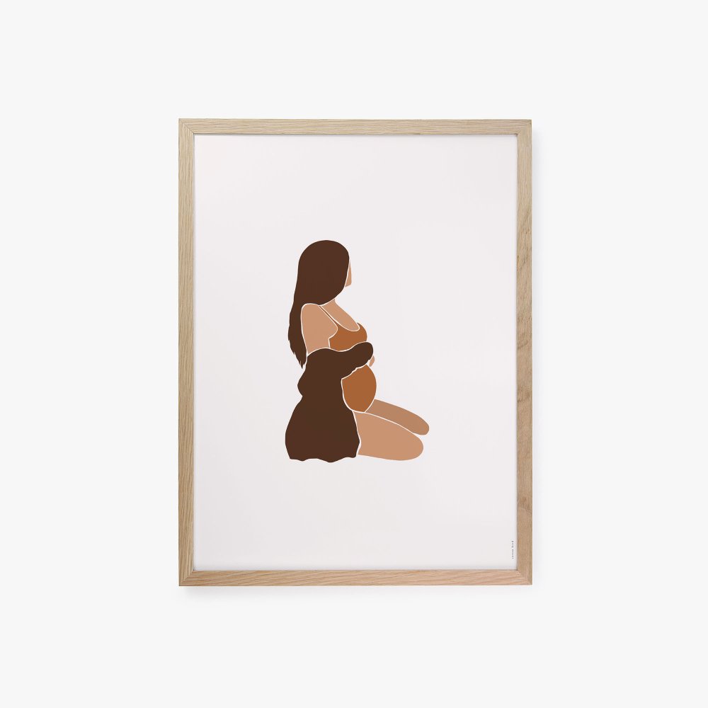 Een poëtische illustratie van een moeder die haar baby'tje verwacht... De Calor-poster past perfect bij lichte muren en geeft een originele touch aan je muurdecoratie.