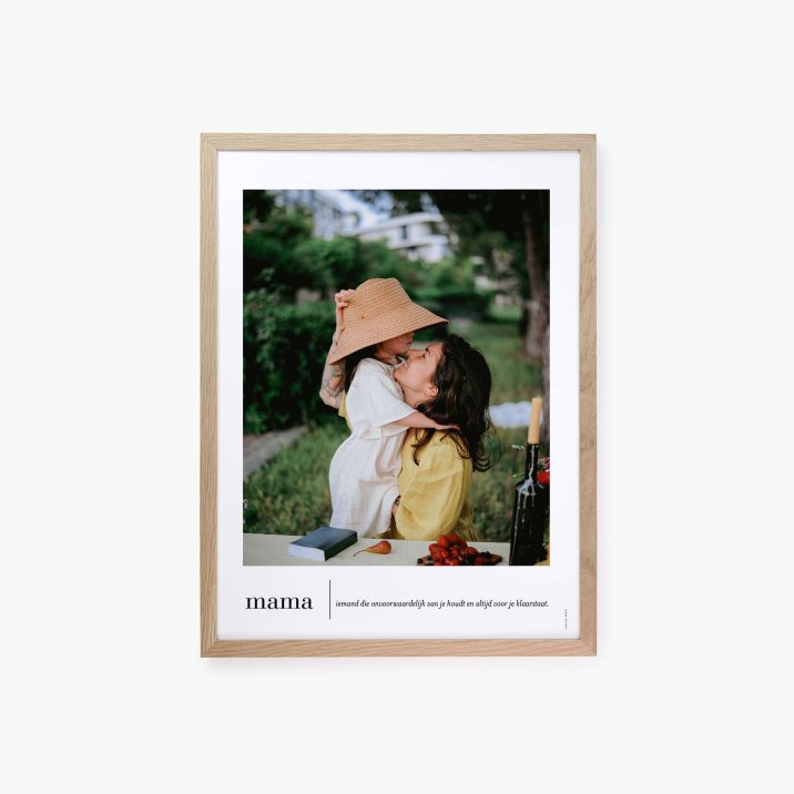 Deze poster is verkrijgbaar in meerdere formaten en vindt gemakkelijk een plekje in jouw interieur. Maak je poster helemaal af met een elegante lijst of posterhouder van echt eikenhout (optioneel).