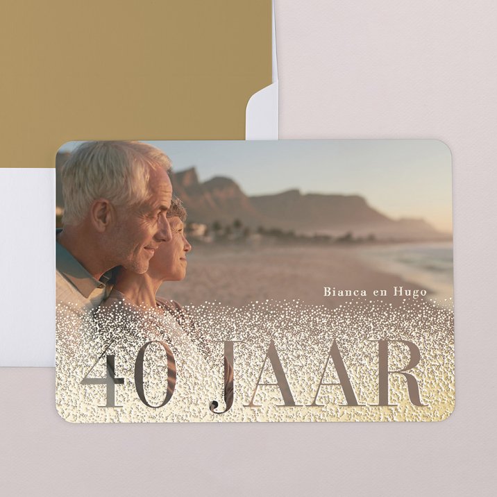 Nodig jullie gasten uit voor jullie 40 jarig huwelijksfeest met een mooie huwelijksjubileum uitnodiging die jullie trouwfoto volledig tot zijn recht laat komen.