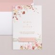 Aquarelsamenstelling van bloemen, delicate gouden accenten: de trouwkaart Rosalia schildert een romantisch tafereel in roze tinten, perfect om jullie mooie dag aan te kondigen aan degenen die je liefhebt.