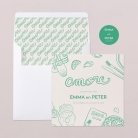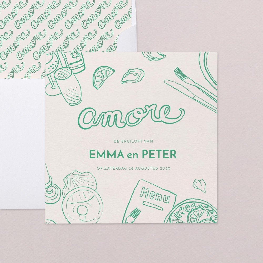 De citrusschijven, kaarsen en andere decoraties waar jullie straks de tafels mee gaan versieren zijn geïlliustreerd op de kaart Amore Mio. Uw liefde staat in handschrift afgedrukt op deze creaties in zachte Mediterrane tinten: ideaal om een zomerse bruiloft aan te kondigen.