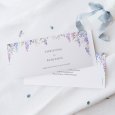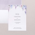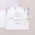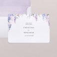 Op de Wysteria huwelijksuitnodiging is een prachtige paarse blauweregen in aquarel geschilderd rond jullie vreugdevolle aankondiging. Een prachtig bloemstuk, perfect om een zomerbruiloft aan te kondigen.