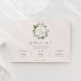 De natuur ontmoet elegantie op de trouwkaart Amedeo. Een prachtige vegetatieve krans omlijst jullie namen op dit tijdloze ontwerp, ideaal voor een viering in op het Franse platteland.