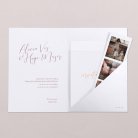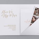 Het papier van deze trouwkaart is van hoge kwaliteit en heeft een "soft touch" en zilveren afwerking. Het model heeft de vorm van een hoesje.