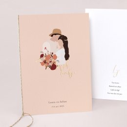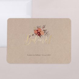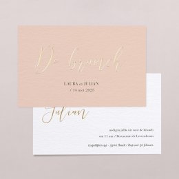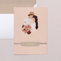 Een elegante gestileerde illustratie van de liefde, omhuld in zachte kleuren en afgewerkt met een vleugje goud. Nodig familie en vrienden uit om samen de liefde te vieren met het model Amiro.