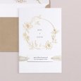 Op de trouwkaart Carmen omlijst een prachtige gouden getekende bloemenkrans de namen van het bruidspaar. Een verfijnde samenstelling, perfect voor een landelijke, chique of bohemien bruiloft.