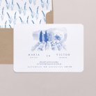 Het Zuiden komt poëtisch tot leven op de trouwkaart van Rosemary. Uitgestrekte velden, cipressen en een typisch stenen huis worden afgebeeld in aquarel op dit model: perfect om een zomerse viering aan te kondigen op een plek vol charme.