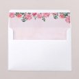 De trouwkaart Roses and Red toont een prachtig bloemenboeket in rozetinten, dat de voornamen van het bruidspaar versiert. Dit ontwerp, dat elegant met aquarel werd geschilderd, kondigt jullie romantische verbintenis aan.