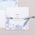 Blauwe bloemen van aquarel sieren de trouwkaart Sweet Blue. Op fijne en lichte wijze vertelt dit drukwerk op poëtische wijze over jullie aanstaande bijzondere dag en het nodigt jullie gasten uit om een deel uit te maken van dit speciale moment.