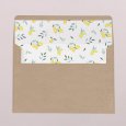 Het iconische locatie van jullie verbintenis staat centraal op de trouwkaart Baptistine. Bloemen en fruit omringen jullie aankondiging op dit kleurrijke ontwerp, ideaal voor een landelijke bruiloft, eenvoudigweg prachtig.