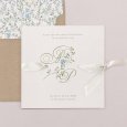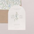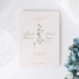 De minimalistische en tijdloze trouwkaart Danaé zet jullie voornamen in het zonnetje, gekalligrafeerd naast een sierlijke natuurillustratie.