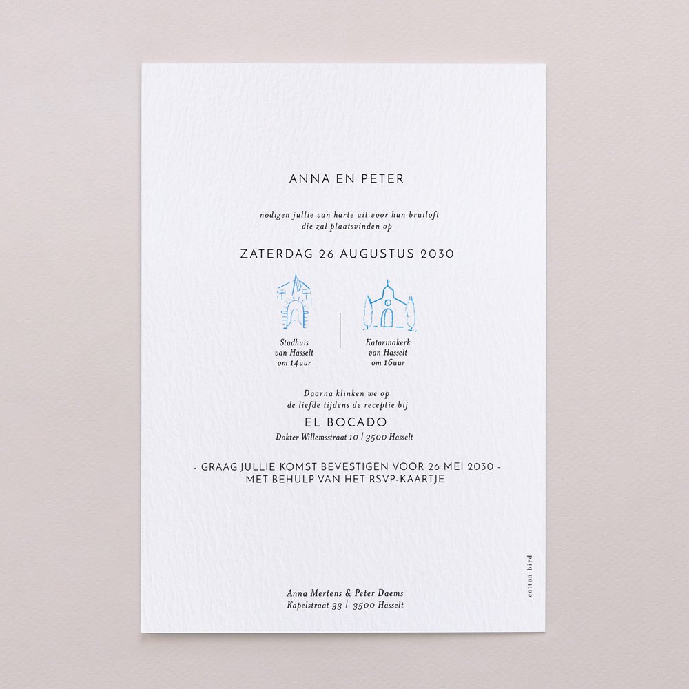 De trouwkaart nodigt officieel jullie gasten uit om samen met jullie de grote dag te vieren.