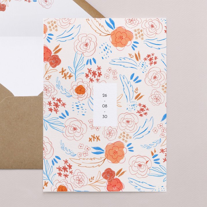 Denk eerst na over de stijl die jullie het meest aanspreekt. Houden jullie van klassiek, met een kaart in portret- of liggend formaat? Of geven jullie de voorkeur aan een origineler ontwerp, met een unieke uitsnede, bijzondere illustraties of elegante gouden of koperen afwerkingen?