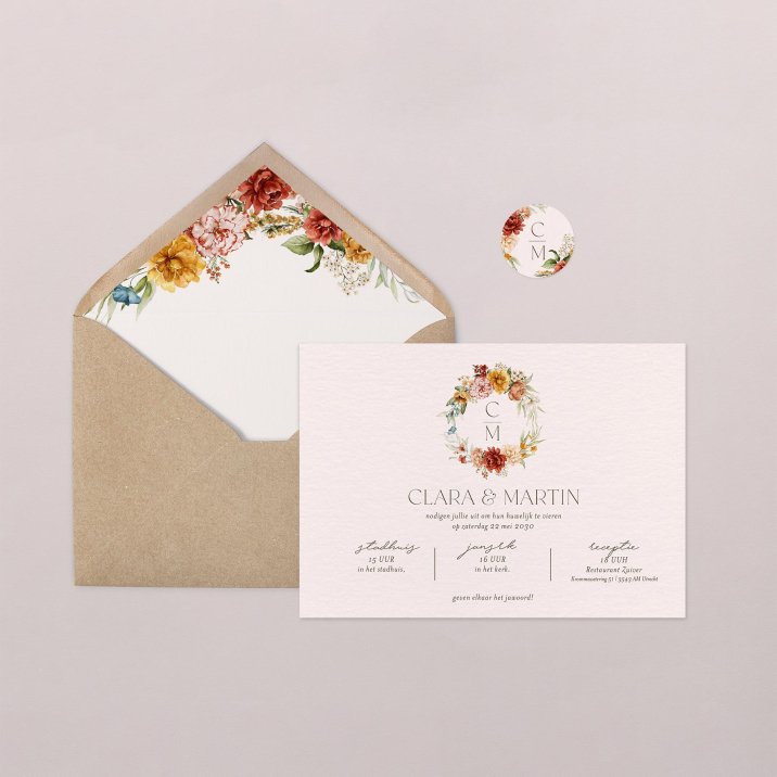 De trouwkaart nodigt officieel jullie gasten uit om samen met jullie de grote dag te vieren.