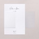 Deze uitnodiging bestaat uit een eenvoudige kaart, met een extra drieluik van kalkpapier die je rond de kaart vouwt. Staand formaat.