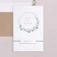 Een krans van eucalyptus wikkelt zich rond geometrische vormen in prachtige goudfolie en zet zo de namen van het bruidspaar in de kijker. De trouwkaart Green Emma kondigt met Scandinavische lijnen en botanische details een elegante, chique en romantische bruiloft aan.