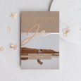 In schitterende koperfolie en overtuigend groot, pronkt het jawoord op een prachtige kraft achtergrond. Samen met een foto van het bruidspaar gaat de trouwkaart Precious Yes tot de essentie van de bruiloft: de belofte van liefde en trouw. Deze trouwuitnodiging past zich aan vele thema’s aan, van vintage tot casual chic.