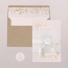 De aankondiging van jullie mooie dag wordt verguld op de trouwkaart Metropolitan. Plantaardige ornamenten, geïllustreerde wilde bloemen en vergulde typografie komen samen op deze uitnodiging, ideaal voor een landelijk chique trouwthema.
