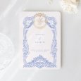 De Vienna trouwkaart kondigt op elegante wijze je bijzondere evenement aan. Ze werd versierd met illustraties en decoratie die het regententijdperk waardig zouden zijn. Bloemen, bladeren, een gouden médaillon en initialen in kalligrafie geven deze creatie van papier een esthetiek die zonder twijfel doet denken aan de serie Bridgerton.