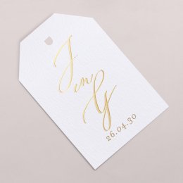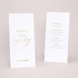 Tijdloos. Elegant. Chic. Drie centrale sleutelwoorden bij de trouwkaart Zola. De namen van het bruidspaar krijgen alle aandacht dankzij een sierlijk lettertype in stralende goudfolie. Deze trouwuitnodiging kondigt een romantische bruiloft aan in alle mogelijke stijlen, van klassiek modern tot bohemian summer chic.