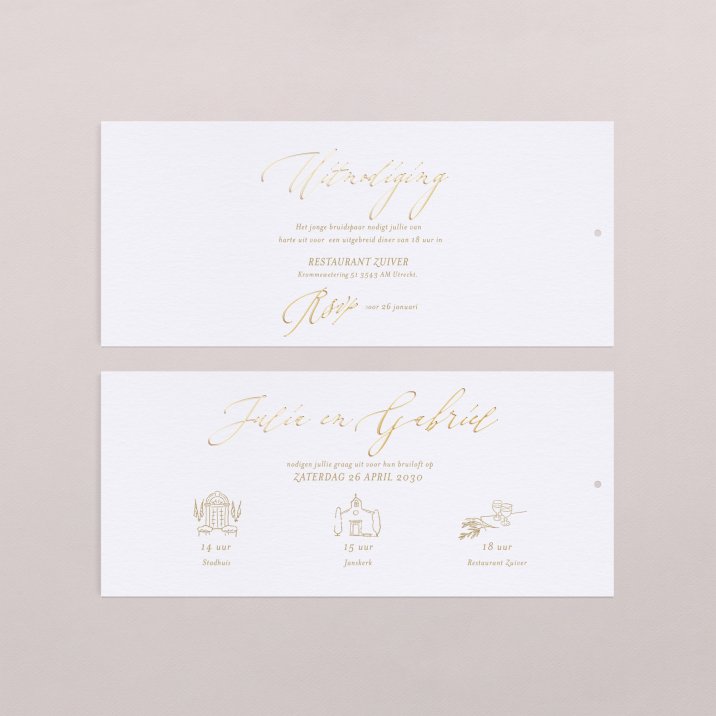 Beide kaarten zijn voorzien van een perforatie zodat je de uitnodiging kan afwerken met een elegant lintje (niet inbegrepen). Zelf in elkaar te zetten.