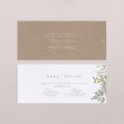 Een boeket van varens, kruiden en kleine bloemen vermengt zich op de trouwkaart Arpèges. Het kraftpapier en de elegante typografie completeren deze samenstelling met een landelijke uitstraling, ideaal voor een natuurlijk chique bruiloft.