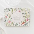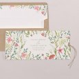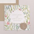 Op de trouwkaart Calixte omringen kleurrijke bloemen en bladeren jullie bijzondere nieuws. Een fris en poëtisch ontwerp, perfect voor een bruiloft met een landelijk of bohemien thema midden in de zomer.