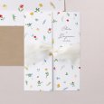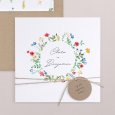 Delicate, kleurrijke veldbloemen sieren de Aglaë huwelijksuitnodigingen. Een poëtische, lieve creatie, perfect om jullie bruiloft aan te kondigen.