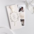 Dubbelzijdige vierkante huwelijksuitnodiging van hoog kwalitatief papier. Om de bloemen vast te maken, schuif je de stelen door de twee hiervoor voorziene perforaties.