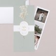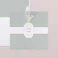 Verfijnd met gouden details, zal de Eugénie-trouwkaart met haar zachte celadongroen uw gasten betoveren zodra ze de envelop openen. Een perfecte creatie om een elegante ceremonie aan te kondigen. Kleuren: Groen, Goud Thema: Landelijk, Boho, Chic