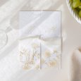 Met zijn prachtige wilde bloemen en elegante kalligrafie schildert de trouwkaart Puccini een tafereel vol poëzie. Een perfecte uitnodiging om een bohemien-themaceremonie aan te kondigen.
