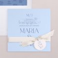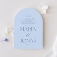 De Palazzo Azzurro huwelijksuitnodiging weerspiegelt op poëtische wijze de levensstijl van het zuiden. De delicate hemelsblauwe kleurtonen passen harmonieus in het schilderachtige, liefdevol geïllustreerde landschap van jullie huwelijksfeest. De stijlvolle en discreet vormgegeven initialen van de bruid en bruidegom geven de uitnodiging een bijzondere elegantie. Ideaal om een zomers feest op een betoverende locatie aan te kondigen.