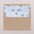 Het klassieke bloementhema krijgt een moderne twist op de trouwkaart Hortense. Een prachtige krans van blauwe bloemen siert dit ontwerp, dat perfect is om de toon te zetten voor een stijlvolle en kleurrijke landelijke bruiloft.