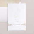 Deze uitnodiging bestaat uit 2 elementen: een hoofdkaart en een inlegkaart. De perforaties in de hoofdkaart geven de gelegenheid een elegant lintje toe te voegen (lintje niet inbegrepen). Zelf in elkaar te zetten.