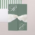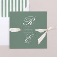 Minimalistisch en chic tegelijk, toont de Canterbury-trouwkaart de initialen van het bruidspaar in prachtige kalligrafie. Een creatie in zachte groentinten, ideaal om een elegante bruiloft te vieren. Kleuren: Groen, Wit Thema: Chic, Minimalistisch