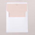 Deze uitnodiging is een vierkante vouwkaart met een hoesje aan de linker binnenkant. Het bijhorende inlegkaartje kan in het hoesje worden geschoven.
