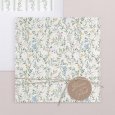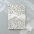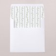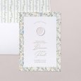 Deze uitnodiging is een vierkante vouwkaart met een hoesje aan de linker binnenkant. Het bijhorende inlegkaartje kan in het hoesje worden geschoven.