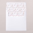 Deze uitnodiging is een vierkante vouwkaart met een hoesje aan de linker binnenkant. Het bijhorende inlegkaartje kan in het hoesje worden geschoven.