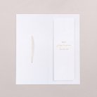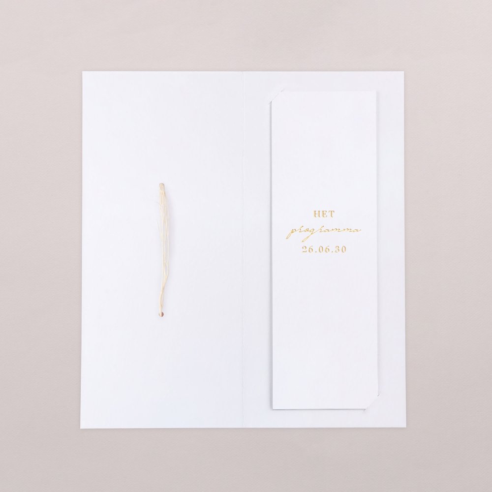 Deze uitnodiging bestaat uit een kaart met dubbele flap en een boekenlegger.