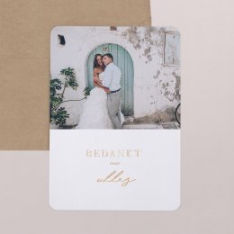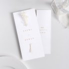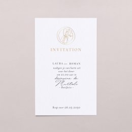 De trouwkaart Gemma II met haar gouden afwerking belooft zowel een authentieke als sobere huwelijksceremonie vol elegantie. Door de toevoeging van de Broom droogbloemen geef je jullie uitnodiging net wat extra's.