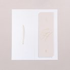 Deze uitnodiging bestaat uit een kaart met dubbele flap en een boekenlegger.