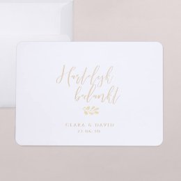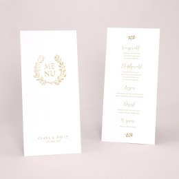 Zuiver wit en glanzend goud... pure elegantie voor het aankondigen van jullie unieke dag. Verwonder jullie gasten met dit model Lauréa.