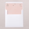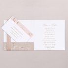 Deze uitnodiging is een vierkante vouwkaart met een hoesje aan de linker binnenkant. Het bijhorende inlegkaartje kan in het hoesje worden geschoven.