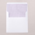 Deze uitnodiging is een vierkante vouwkaart met een hoesje aan de linker binnenkant. Het bijhorende inlegkaartje kan in het hoesje worden geschoven.
