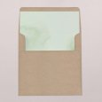 Deze uitnodiging is een vierkante vouwkaart met een hoesje aan de linker binnenkant. Het bijhorende inlegkaartje kan in het hoesje worden geschoven.