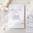 Elegantie en eenvoud komen samen op de trouwkaart Flaubert. Met zijn strakke lijnen en jullie namen, verfraaid met verfijnde kalligrafie, voorspelt dit ontwerp een chique bruiloft die je niet mag missen."