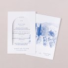 Het Zuiden komt poëtisch tot leven op de trouwkaart van Rosemary. Uitgestrekte velden, cipressen en een typisch stenen huis worden afgebeeld in aquarel op dit model: perfect om een zomerse viering aan te kondigen op een plek vol charme.